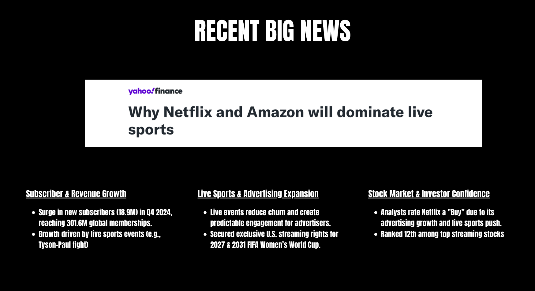This course examines the impact of macroeconomic crises on corporations and governmental institutions, focusing on financial decision-making, investor relations, and public communications. For my project above, I conducted a case study on Netflix, evaluating its financial standing, stock market performance, and overall business strategy, providing insights into how economic factors influence corporate success. All work shown is original and was created for academic purposes only. I am not affiliated with the brands featured.